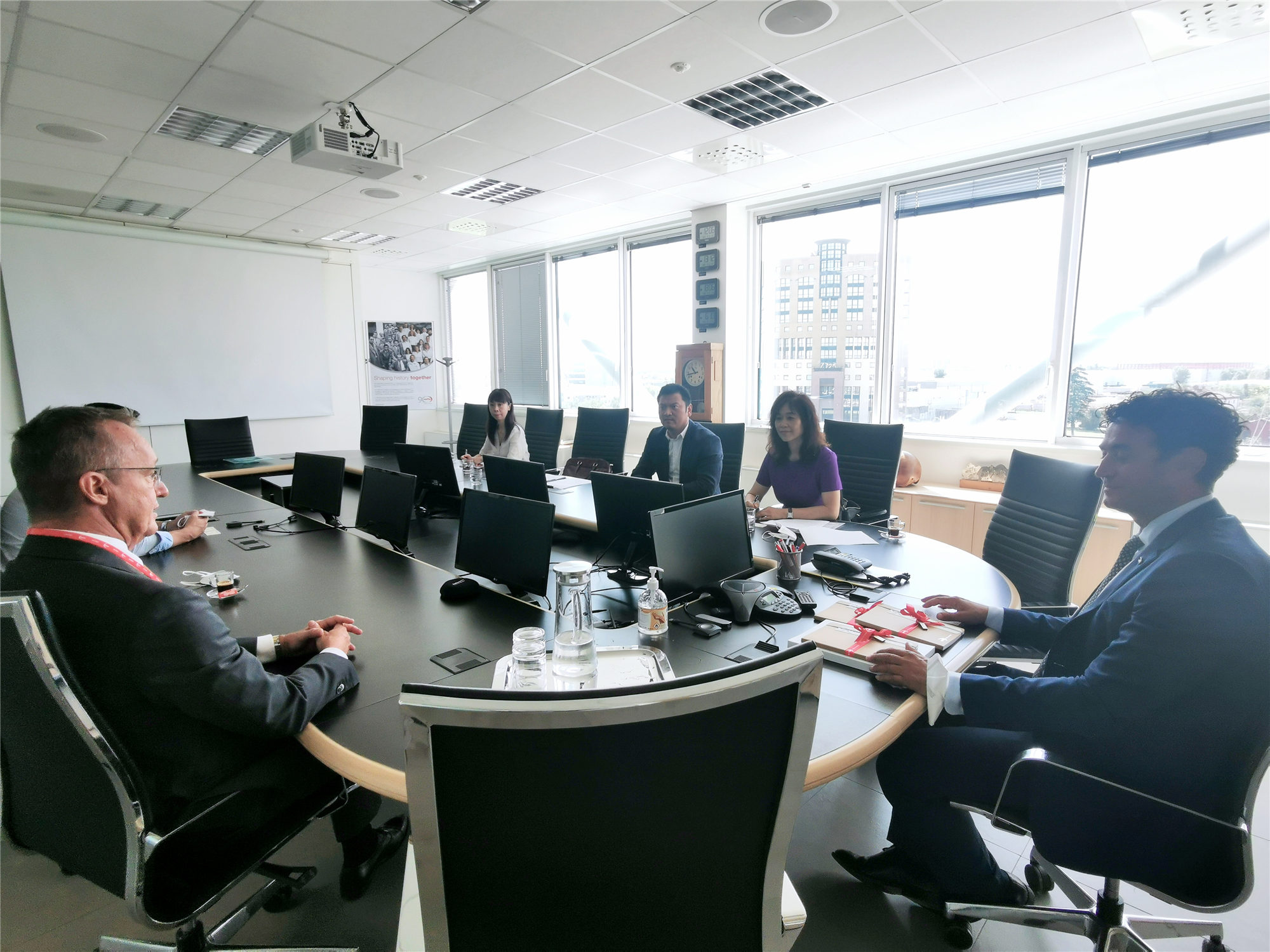 9月6日,舒骆玫参赞带队走访意大利大型医疗设备集团Cefla,了解其经营情况及对华投资意向,并简介了中国经济发展情况、吸引投资政策和成都营商环境。我处李鸿昳领事、李斯卫副领事陪同。