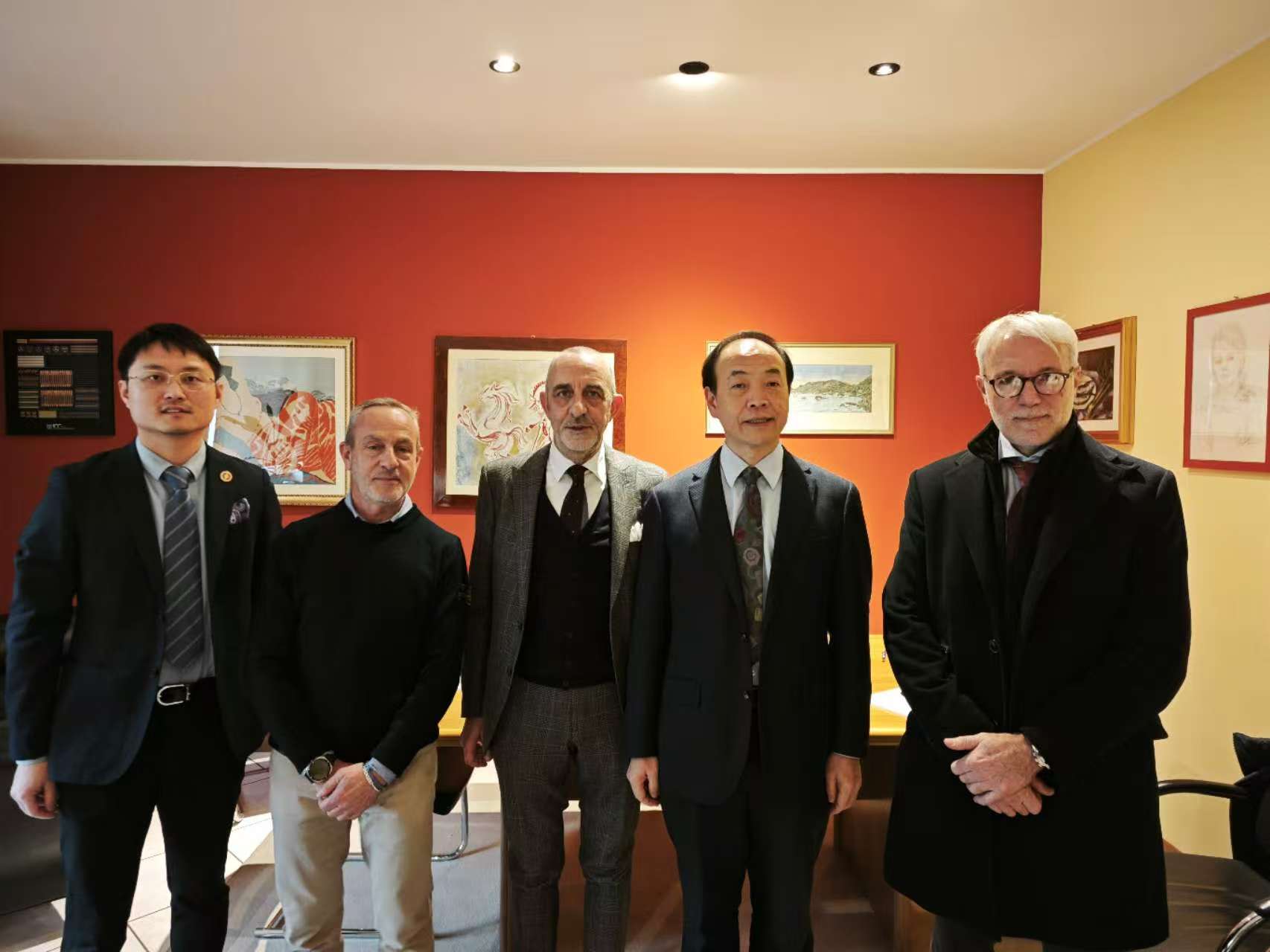 1月20日,耿协威参赞赴莱科-松德里奥工业联合会调研,与联合会主席坎帕纳里座谈,调研当地产业发展情况。经商处二秘潘源文、联合会总经理西尔托里、意大利中国商会高级经理吕晓陪同。
