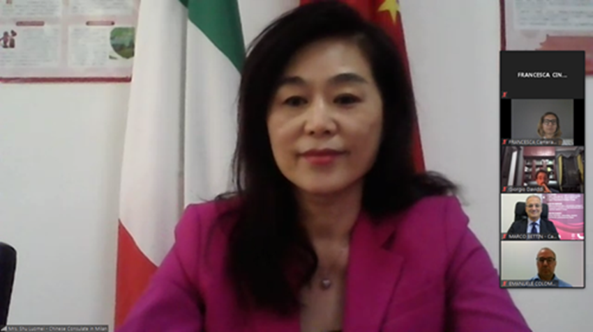 9月28日,舒骆玫参赞应邀出席第130届广交会意大利线上推介会并致辞。广交会副秘书长兼中国对外贸易中心集团副总裁叶继奖、意大利驻广州领事戴维迪、意中商会秘书长贝廷、意大利进出口商协会秘书长多米诺提等出席活动并讲话。